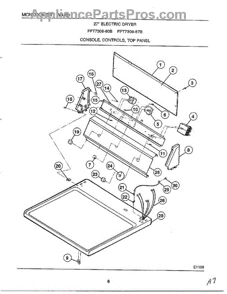 Parts for Frigidaire 7308B: Console, Controls, Top Panel Parts