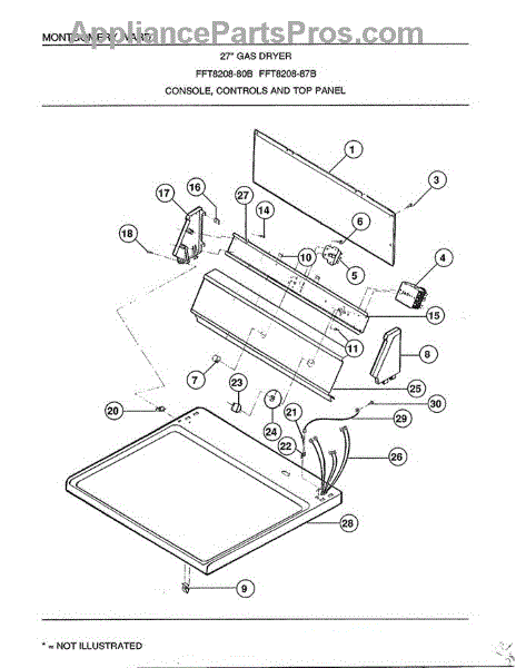 Parts for Frigidaire 8208B: Console / Controls And Top Panel Parts