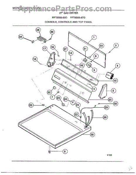Parts for Frigidaire 8589-87D: Console / Controls And Top Panel Parts