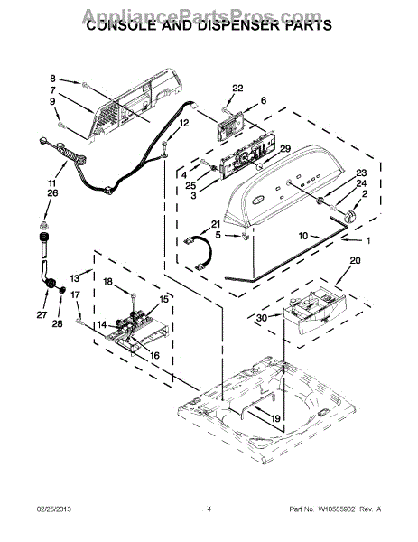 This facia assembly is the dispenser front panel that restores the appearance and proper user access to the detergent/softener dispenser. It provides a clean, secure fit for the dispenser opening and controls. What it does