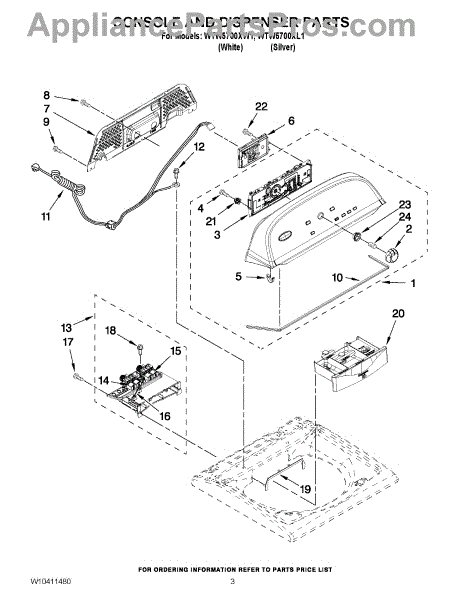 Parts for Whirlpool WTW5700XW1: 02 - Console And Dispenser Parts