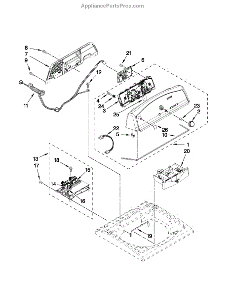 This part is a washer control board. It is manufactured by Whirlpool and controls the washing machine's various functions, such as filling, soaking, spinning, and draining. User inputs through the physical controls are transmitted to the control board, which then controls the various systems within the washer to complete a cycle.Washer electronic control boards are located inside the appliance, so they are protected from many threats. However, moisture, heat, and corrosion can all cause the board to fail. Signs of failure include intermittent operation, incorrect operation, and an inoperable washing machine. When the control board fails, it will need to be replaced. Always exercise caution when removing the plugs from the back of the control board and connecting them to the new one.This genuine OEM part is sold individually. It is compatible with Whirlpool and Kenmore branded washing machines.