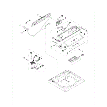 The Control Panel Assembly is an OEM component specifically designed for Whirlpool top-loading washing machines. Found at the top center of the washer facing outward, the control panel features an electronic display and buttons to operate wash cycles.