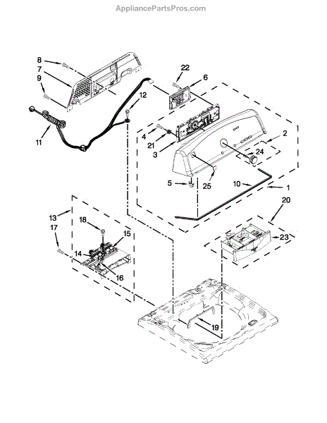 The Console Clip is an OEM part compatible with Whirlpool dryers. This clip secures the control console assembly to the top panel, ensuring it is firmly mounted during operation. Properly functioning clips are necessary to maintain the correct alignment of controls and prevent detachment.