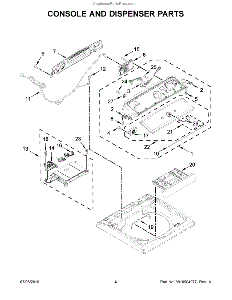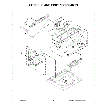 The Dispenser Drawer is an OEM part for Whirlpool top-loading washers. Located internally at the top, it houses separate chambers for laundry detergent and fabric softener.