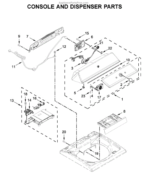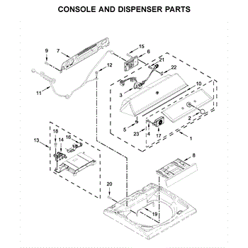 The Console is an OEM part for Whirlpool washers. It is responsible for housing the washer control panel and electronic display. Designed to withstand the test of time and laundry loads, the durable and UV-resistant plastic construction protects sensitive internal electronic components from damage.