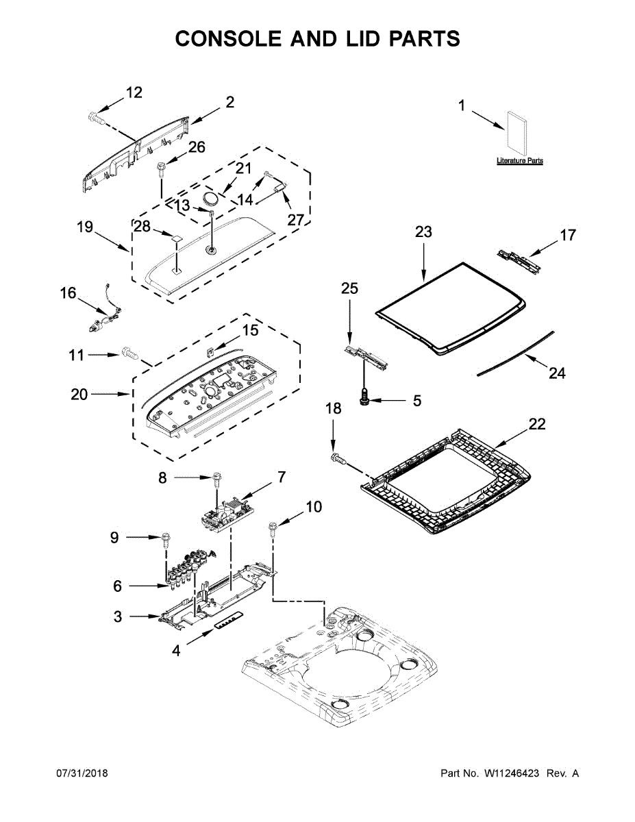 Parts for Kenmore 110.31632612 (11031632612, 110 31632612): Console And Lid Parts