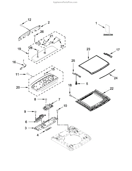 This is a washing machine control panel. It is an essential internal component of the appliance. The main responsibility of the control panel assembly is to ensure all washer components are operating correctly. It also sets the timing for washing machine cycles and controls items like the drain pump and drive motor.The control panel assembly can malfunction or become damaged and cause the washing machine to stop operating properly. The washer may not fill or fail to drain, spin or start up. If this component is causing these problems, it should be replaced. The first step is to unplug the washing machine from the wall. A pair of work gloves can also be useful for protecting the hands. Take the control knob off the panel remove the screws holding the back panel on the part. Remove the board while taking note of where the wires go. Disconnect them and remove the control panel. Install the new component in its place.The control panel assembly is an authentic OEM replacement component that is directly sourced from the manufacturer. It's sold as a single part and is compatible with washing machines by Kenmore.