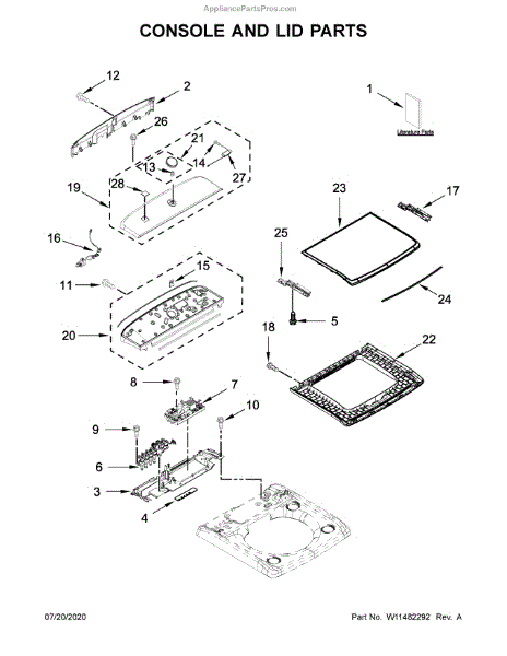 This is a washing machine control panel. It is an essential internal component of the appliance. The main responsibility of the control panel assembly is to ensure all washer components are operating correctly. It also sets the timing for washing machine cycles and controls items like the drain pump and drive motor.The control panel assembly can malfunction or become damaged and cause the washing machine to stop operating properly. The washer may not fill or fail to drain, spin or start up. If this component is causing these problems, it should be replaced. The first step is to unplug the washing machine from the wall. A pair of work gloves can also be useful for protecting the hands. Take the control knob off the panel remove the screws holding the back panel on the part. Remove the board while taking note of where the wires go. Disconnect them and remove the control panel. Install the new component in its place.The control panel assembly is an authentic OEM replacement component that is directly sourced from the manufacturer. It's sold as a single part and is compatible with washing machines by Kenmore.