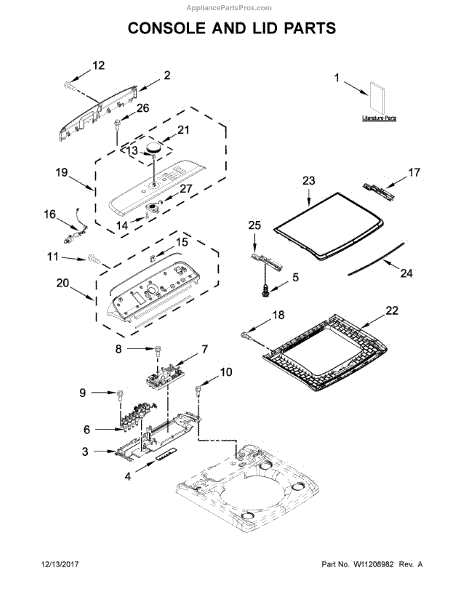 The Upper Lid Assembly is an OEM part for Whirlpool washing machines. It covers the opening at the top of the washer tub during operation to safely circulate water. The lid assembly contains seals that ensure a tight seal when closed to prevent leaks.