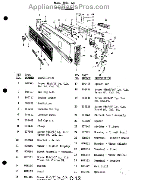 Parts for Whirlpool 8501L30: 38 - Console Panel Parts