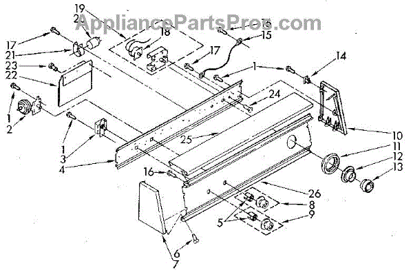 This console screw secures the control console to the appliance cabinet or top, keeping the panel tight and aligned. Replace a missing or damaged screw to stop panel wobble and rattling and maintain a snug, stable fit. What it does: