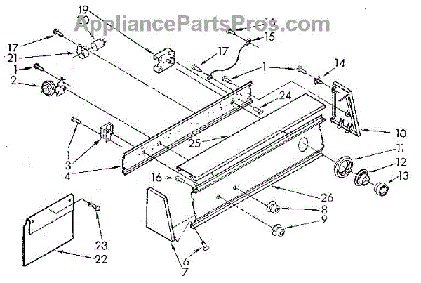 This console screw secures the control console to the appliance cabinet or top, keeping the panel tight and aligned. Replace a missing or damaged screw to stop panel wobble and rattling and maintain a snug, stable fit. What it does:
