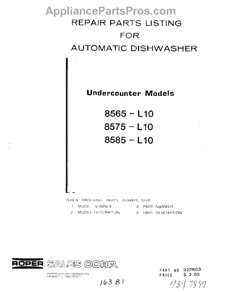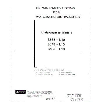 Parts for Roper 8565L10: 01 - Console Panel Parts