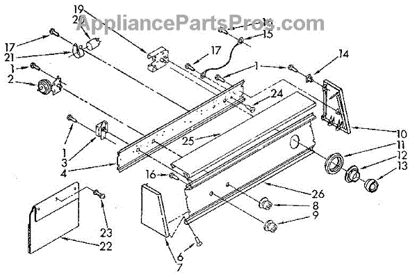 This console screw secures the control console to the appliance cabinet or top, keeping the panel tight and aligned. Replace a missing or damaged screw to stop panel wobble and rattling and maintain a snug, stable fit. What it does: