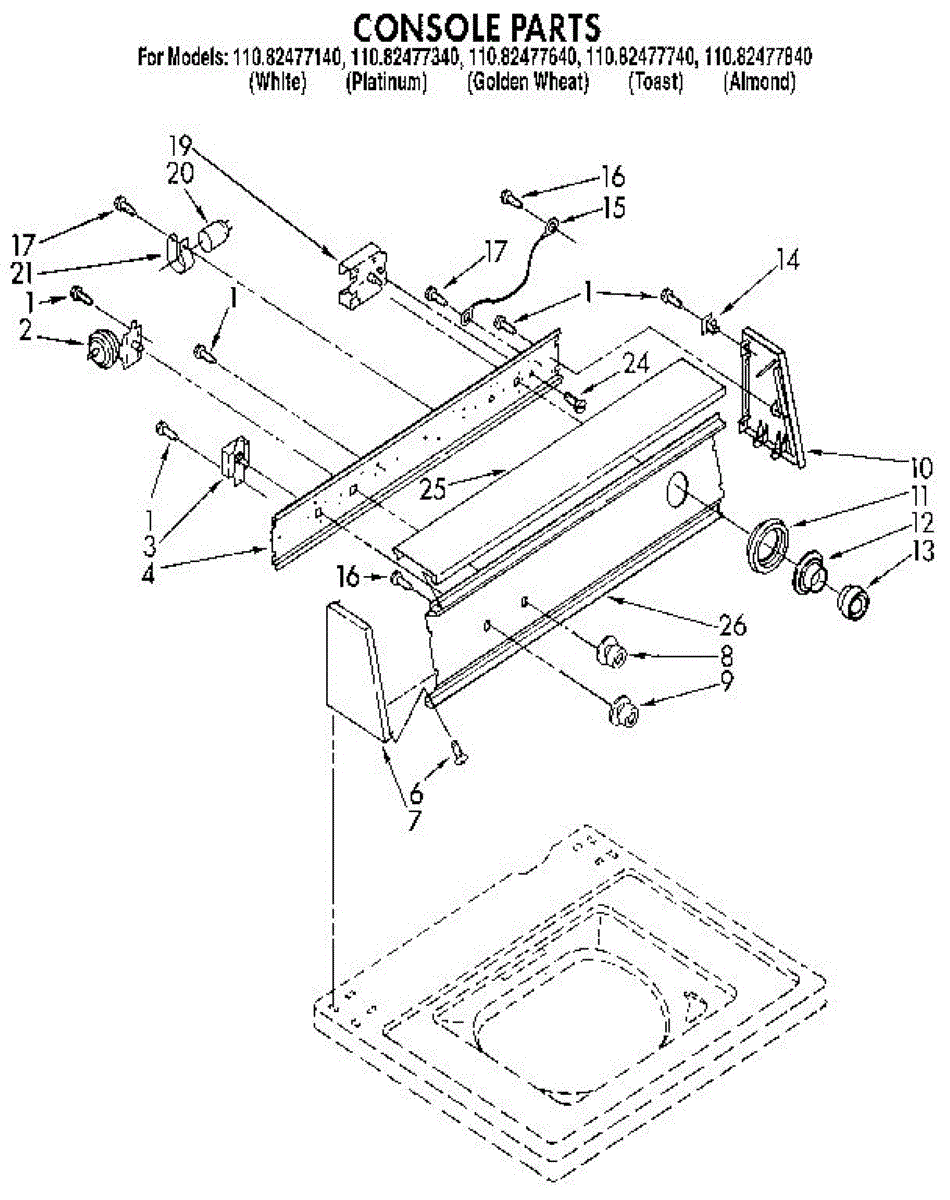 This console screw secures the control console to the appliance cabinet or top, keeping the panel tight and aligned. Replace a missing or damaged screw to stop panel wobble and rattling and maintain a snug, stable fit. What it does: