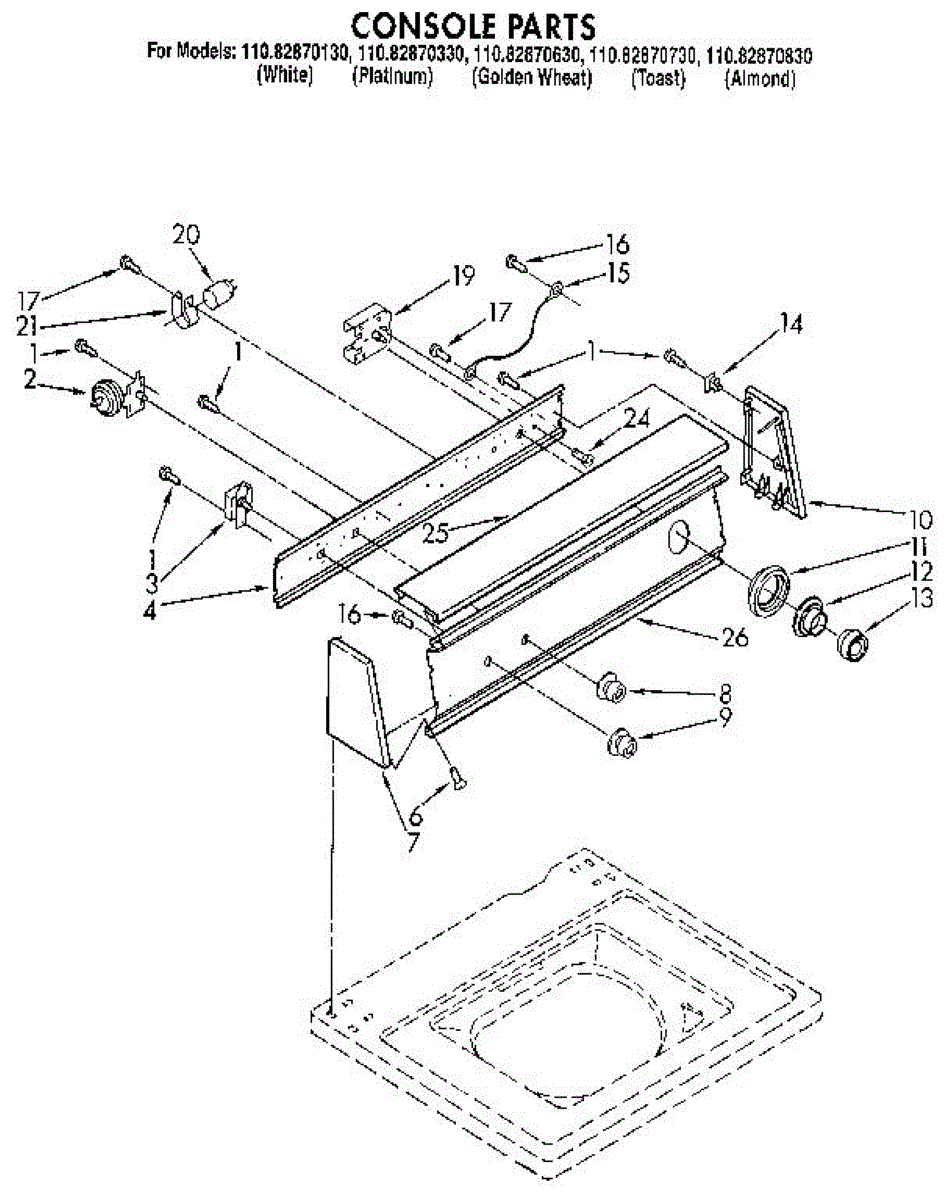 This console screw secures the control console to the appliance cabinet or top, keeping the panel tight and aligned. Replace a missing or damaged screw to stop panel wobble and rattling and maintain a snug, stable fit. What it does: