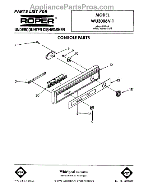Parts for Roper WU3006V1: 01 - Console Parts