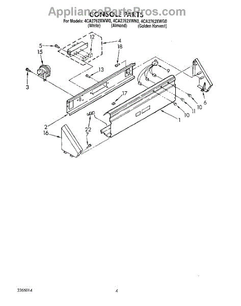 Parts for Whirlpool 4CA2762XWG0: 02 - Console Parts