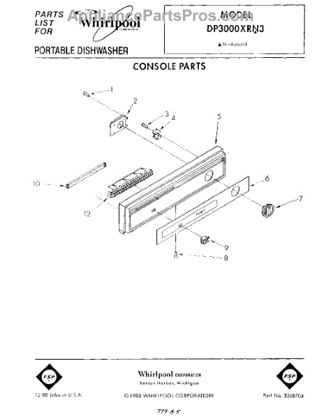 Parts for Whirlpool DP3000XRN3: 01 - Console Parts