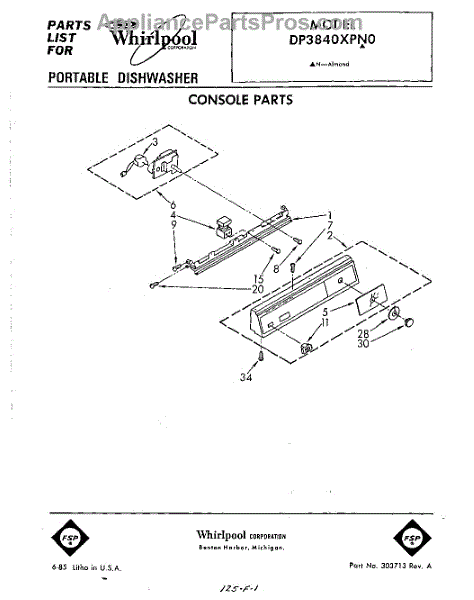 Parts for Whirlpool DP3840XPN0: 01 - Console Parts
