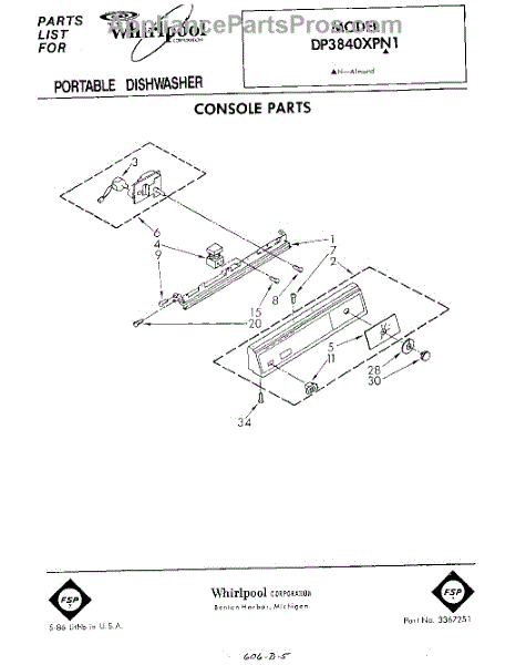 Parts for Whirlpool DP3840XPN1: 01 - Console Parts