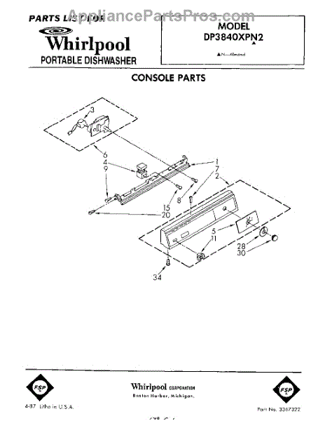 Parts for Whirlpool DP3840XPN2: 01 - Console Parts