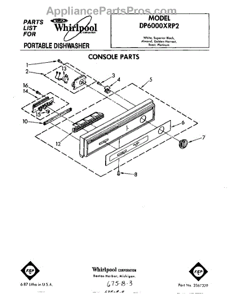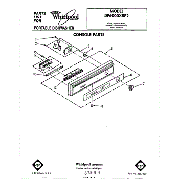Parts for Whirlpool DP6000XRP2: 01 - Console Parts