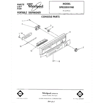 Parts for Whirlpool DP8350XVN0: 01 - Console Parts