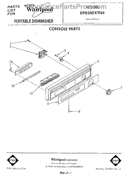 Parts for Whirlpool DP8500XTN4: 01 - Console Parts