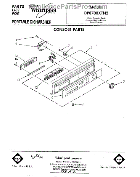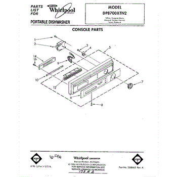 Parts for Whirlpool DP8700XTN2: 01 - Console Parts