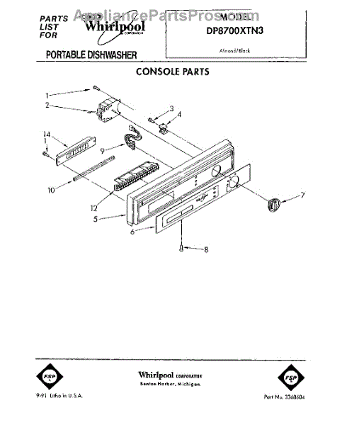 Parts for Whirlpool DP8700XTN3: 01 - Console Parts