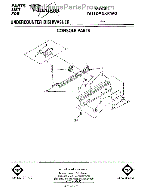 Color: Black. Screw for lower toe panel. For Biscuit screw use 3400865, for white screw use WP3400836.