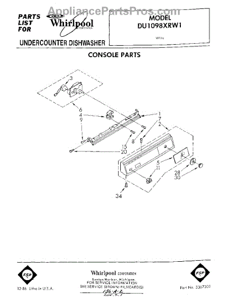 Parts for Whirlpool DU1098XRW1: 01 - Console Parts