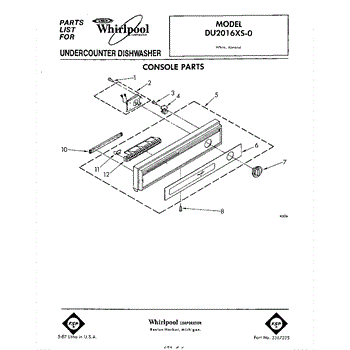 Parts for Whirlpool DU2016XS0: 01 - Console Parts