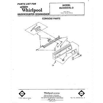 Parts for Whirlpool DU3000XL0: 01 - Console Parts