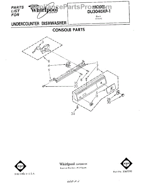 Color: Black. Screw for lower toe panel. For Biscuit screw use 3400865, for white screw use WP3400836.