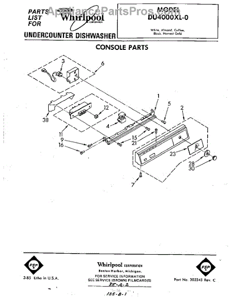 Parts for Whirlpool DU4000XL0: 01 - Console Parts