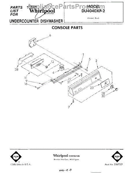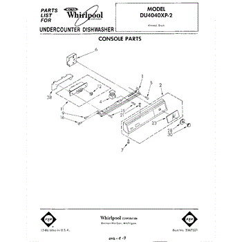 Parts for Whirlpool DU4040XP2: 01 - Console Parts