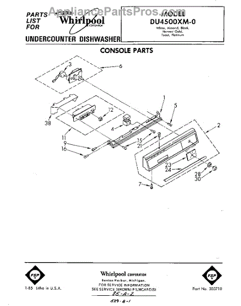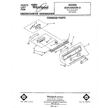 Parts for Whirlpool DU4500XM0: 01 - Console Parts