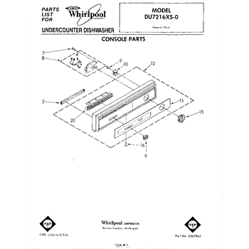 Parts for Whirlpool DU7216XS0: 01 - Console Parts