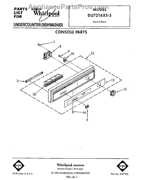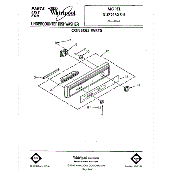 Parts for Whirlpool DU7216XS5: 01 - Console Parts