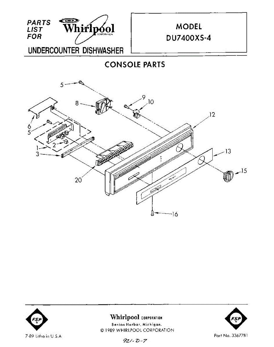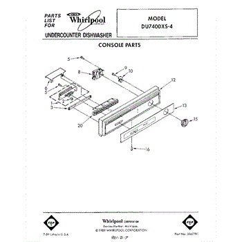 Parts for Whirlpool DU7400XS4: 01 - Console Parts