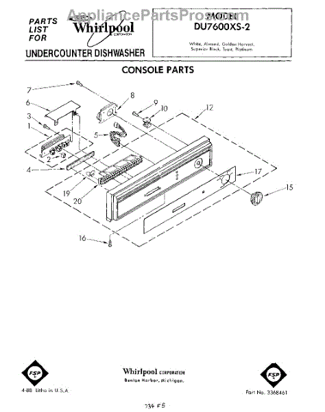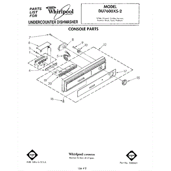 Parts for Whirlpool DU7600XS2: 01 - Console Parts