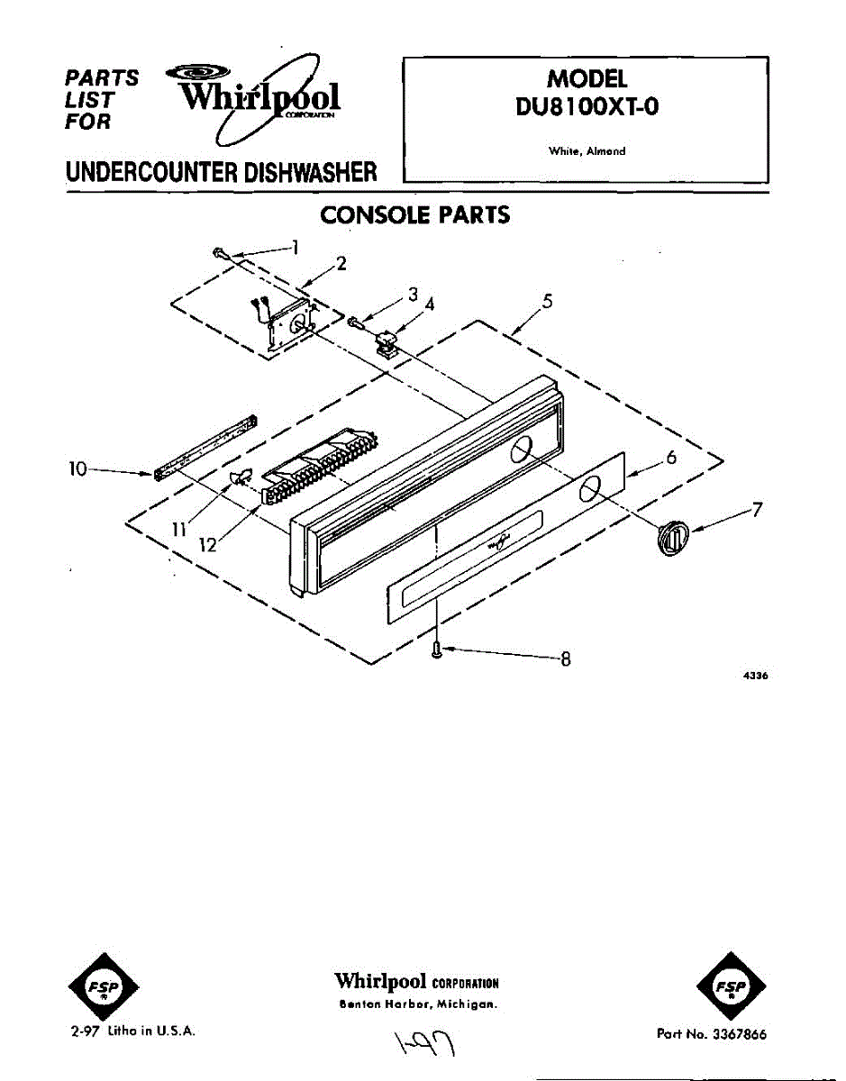 Parts for Whirlpool DU8100XT0: 01 - Console Parts