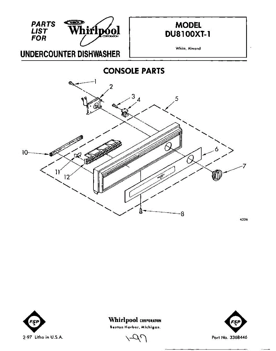 Parts for Whirlpool DU8100XT1: 01 - Console Parts