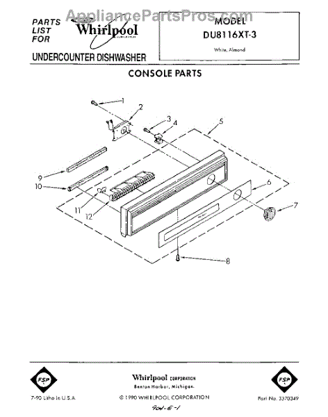Parts for Whirlpool DU8116XT3: 01 - Console Parts