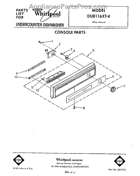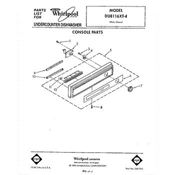 Parts for Whirlpool DU8116XT4: 01 - Console Parts