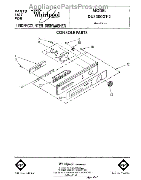 The Whirlpool screw is an OEM replacement part responsible for securing various components or parts on different types of Whirlpool appliances. The screw is designed to provide a secure and reliable fastening connection, ensuring that different parts of the appliance stay in place. It is commonly used in different locations within the appliance, such as the cabinet, panels, or other structural elements. This part fixes the following symptoms: