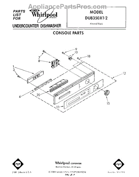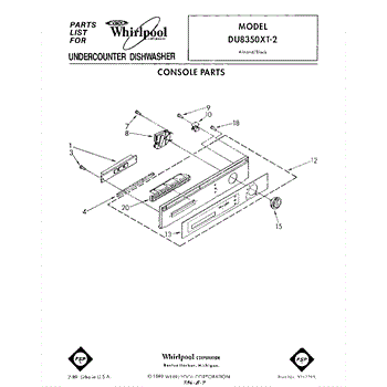 Parts for Whirlpool DU8350XT2: 01 - Console Parts